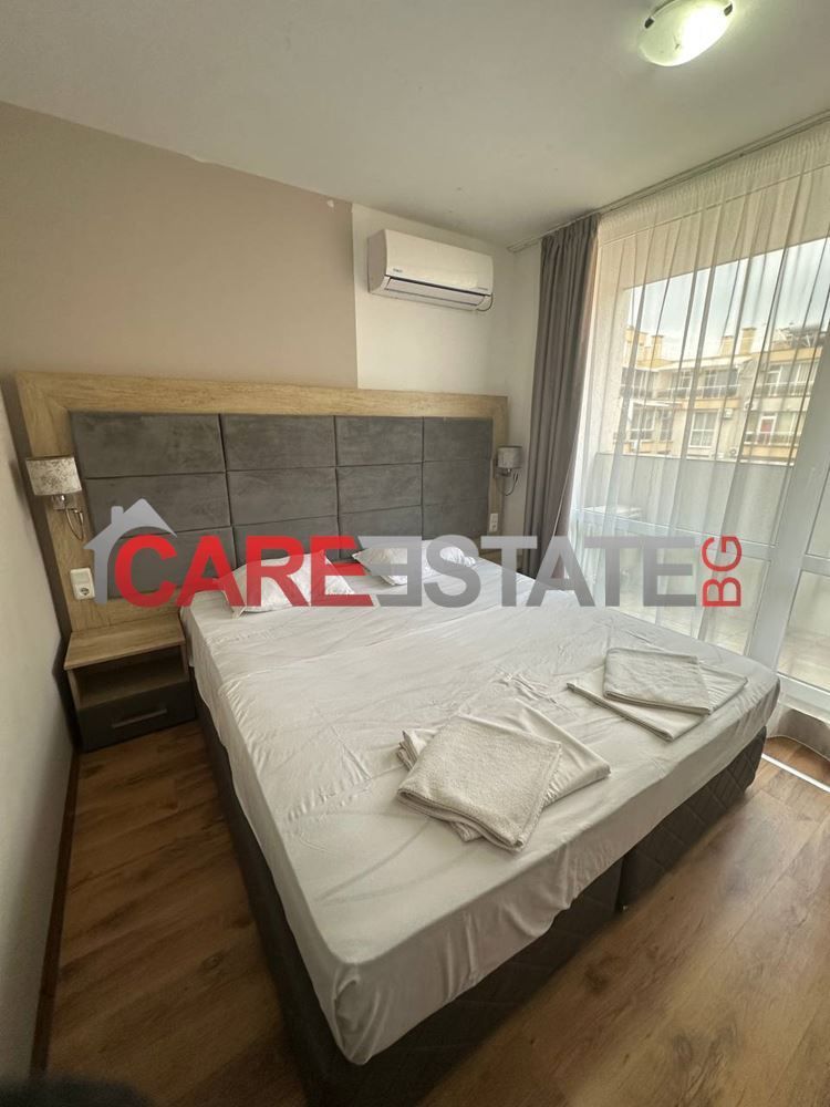 Този слънчев апартамент се състои от просторна всекидневна с кухня, една спалня и комфортна баня с тоалетна. Балкона предлага прекрасни гледки и възможност да се насладите на сутрешното си кафе на открито. Наличието на асансьор в сградата осигурява допълнително удобство, особено когато се връщате след дълъг ден.