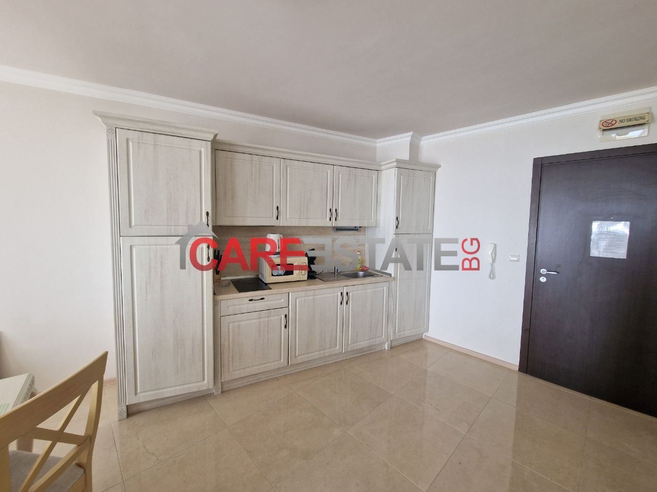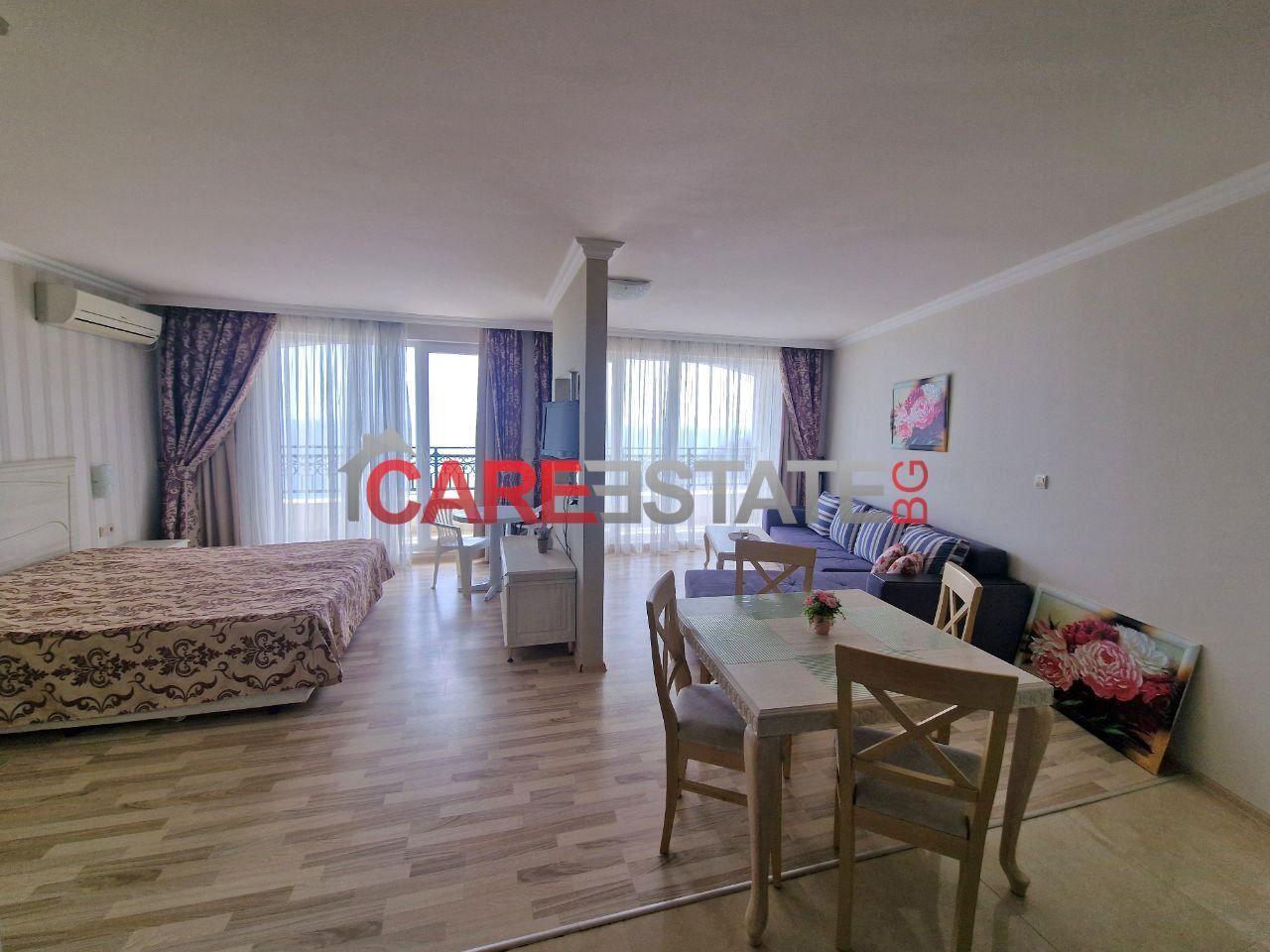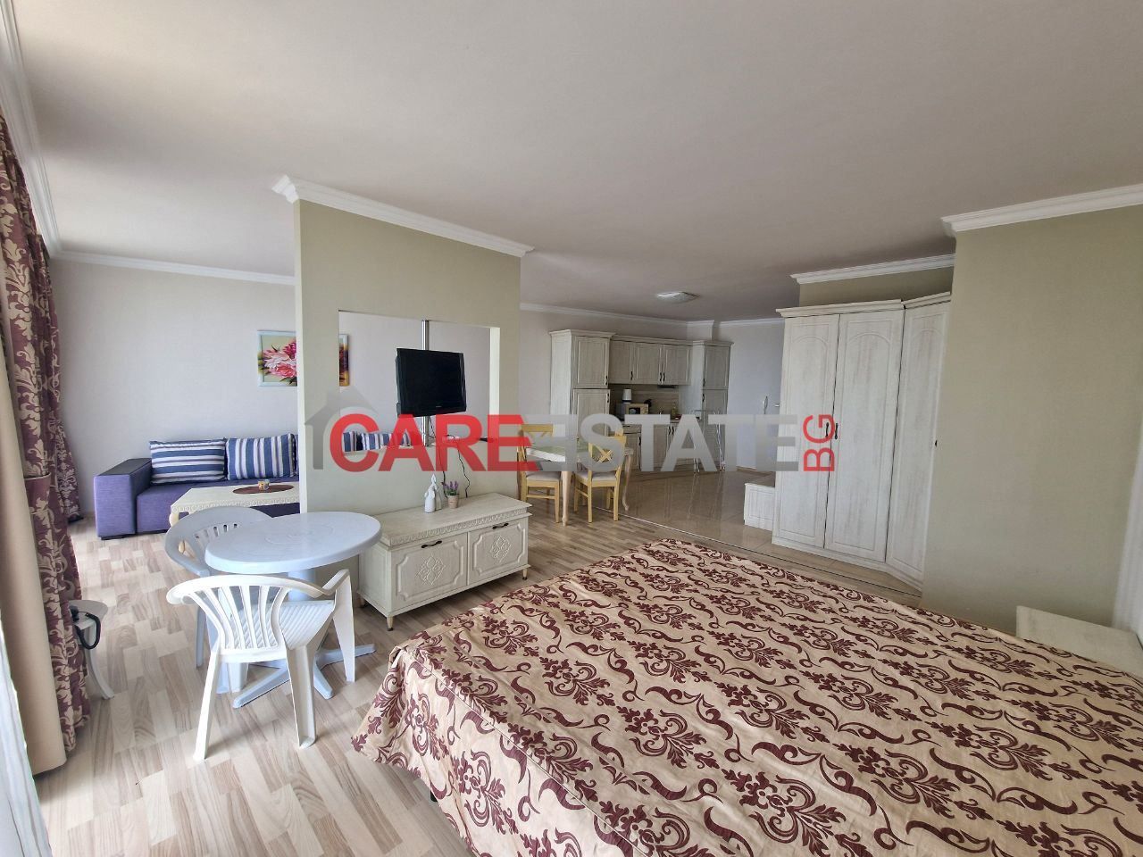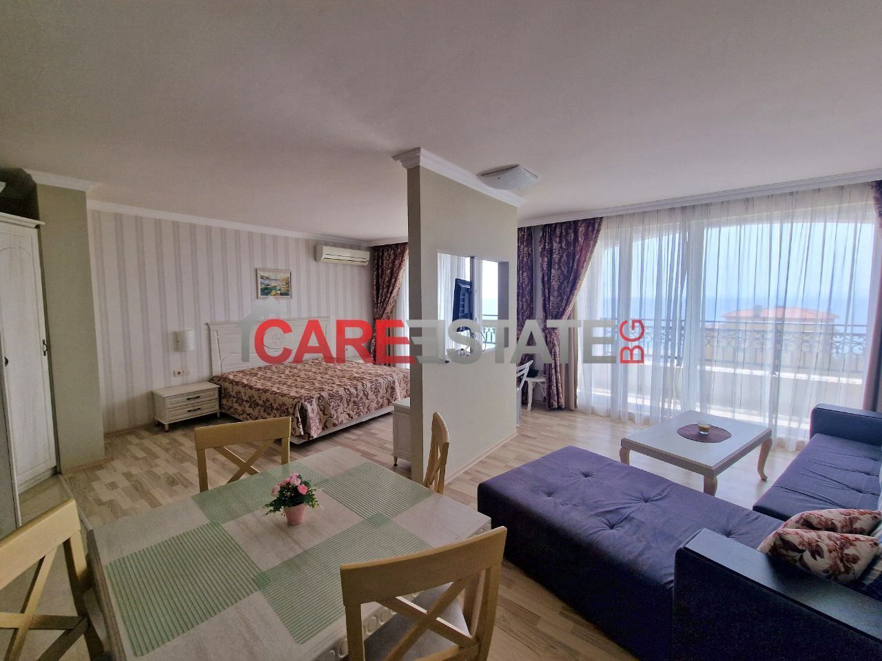 - 🛋️ Разпределение: отворено помещение с кухненски бокс и зона за спане, излаз към балкон, самостоятелна баня с тоалетна