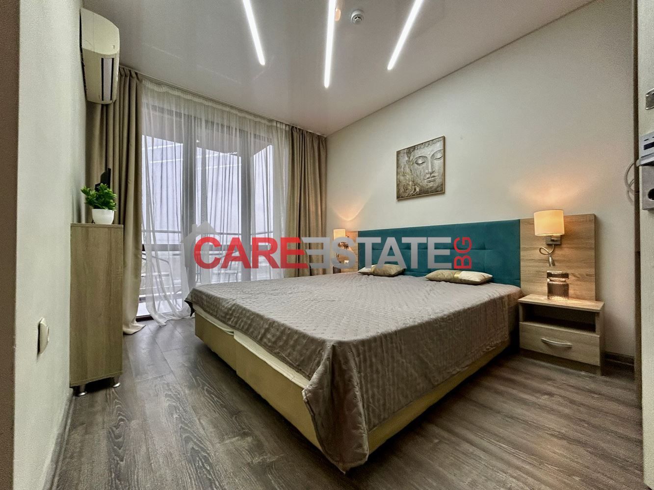 - 🧩 Разпределение: едно функционално помещение с място за дневна и спалня, обособен кухненски бокс; 🚿 баня с тоалетна; 🌅 балкон